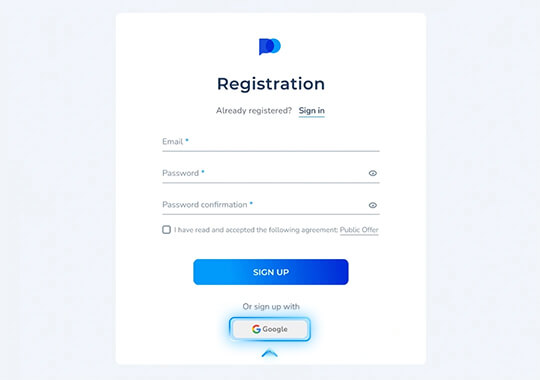 Créez un compte de trading gratuit en utilisant votre adresse e-mail ou simplement en vous autorisant via votre compte Google.
